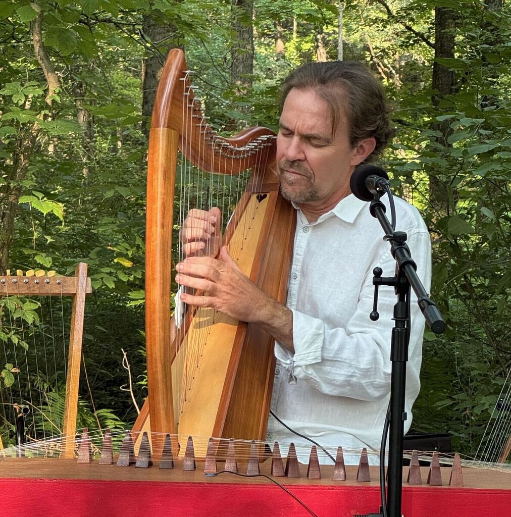 interdisciplinary performance, concert music and sound baths often influenced by his studies of world, folk and contemporary musics. He is a co-founder of World In One Pan Arts Collaborative (a non-profit arts organization whose purpose is to sponsor interdisciplinary collaborations), Vital Vox Vocal Festival, Loom Ensemble (interdisciplinary theater ensemble) & LoomSong (vocal trio). Sasha has performed worldwide and throughout the New York area in venues such as: Carnegie Hall, Whitney Museum, Symphony Space, BAM and Roulette and has worked with various artists, including the composers Meredith Monk, Lou Harrison and Ros Bandt . He currently performs solo as Timbre Tree and as a member of Lyraccord, LoomSong, Gamelan Kingston and the Hogfiddle Consort.